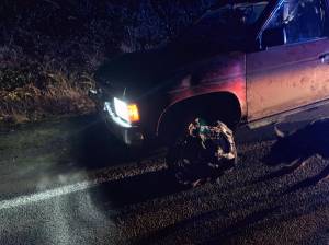 Damage to the wheels is visible following a 55-mile pursuit of a suspected DUI early last Friday that ended near Tokeland.