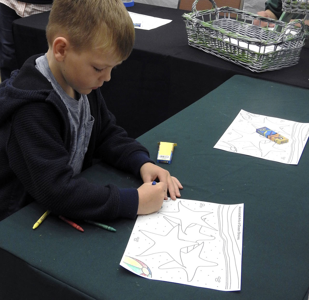 Associated Arts of Ocean Shores invited children to color pictures of beach images for a contest during the annual show last weekend. Here, 6-year-old Killian from Bonney Lake works on his masterpiece.