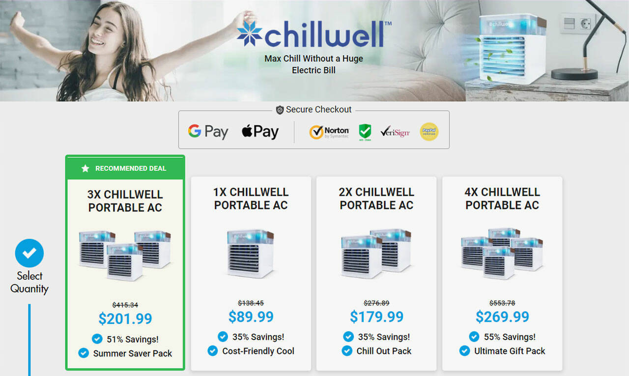The ChillWell AC can be purchase directly from the official website, where you’ll be presented with four different packages, which include: