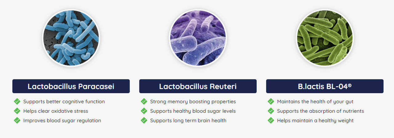 Lactobacillus Paracasei: NeuroTonix contains Lactobacillus paracasei, a probiotic strain with specific benefits linked to cognitive function. According to the makers of NeuroTonix, the Lactobacillus paracasei in the formula can help clear oxidative stress, support better cognitive function, and improve blood sugar regulation, among other benefits.