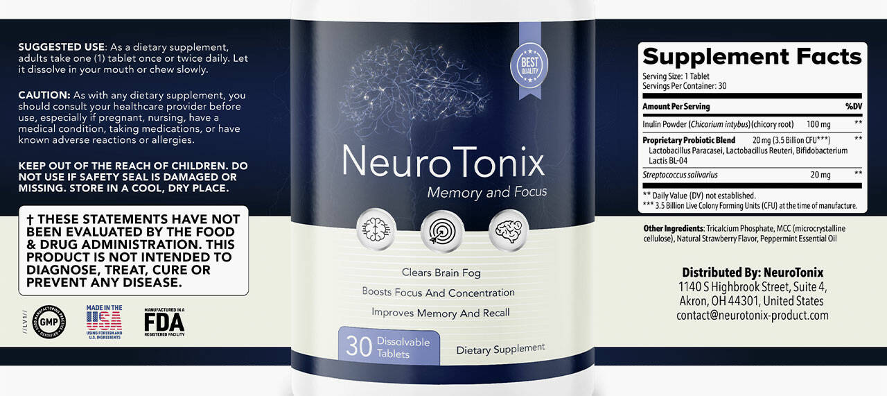 NeuroTonix is a probiotic supplement designed to clear brain fog, boost focus and concentration, and improve memory.