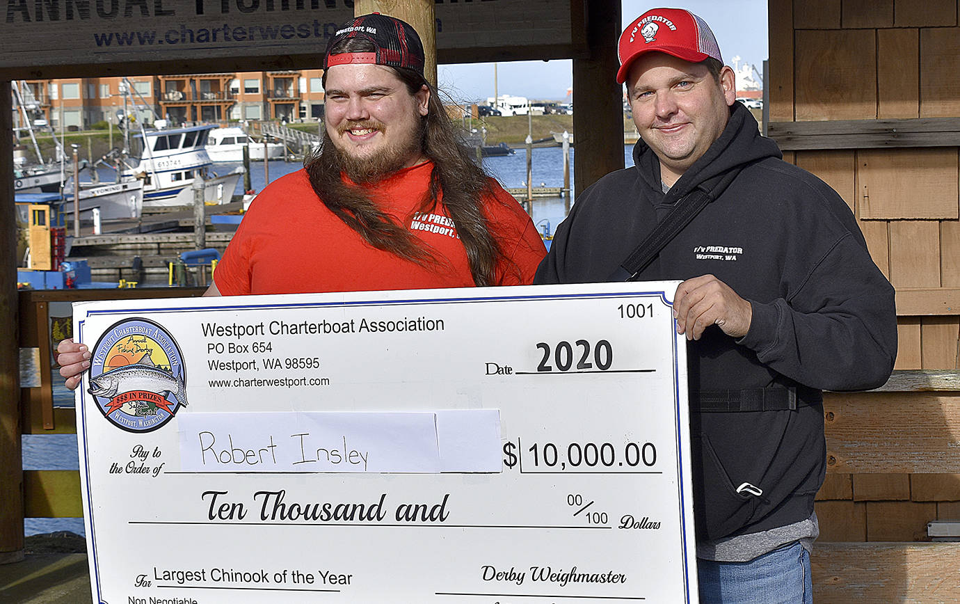 Saturday, Insley was presented his $10,000 check for the season’s largest Chinook salmon in the 2020 Westport Charterboat Association derby.