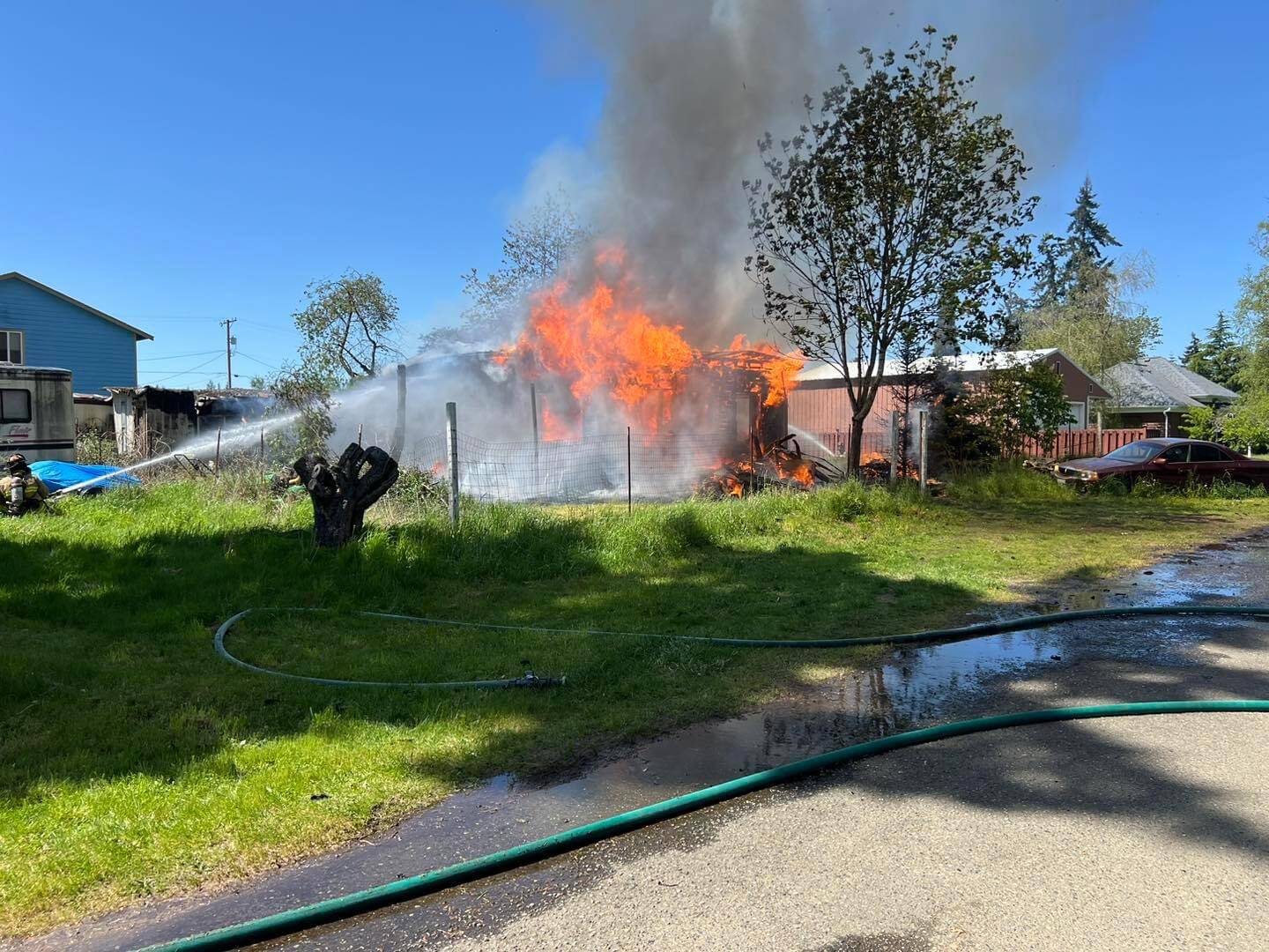 The initial call came in at 1:57 p.m. for a structure fire, said Chief Carlton Rhoades of the Grays Harbor Fire District 1, while the department’s first-out engine was already assisting East Grays Harbor Fire and Rescue with a call.