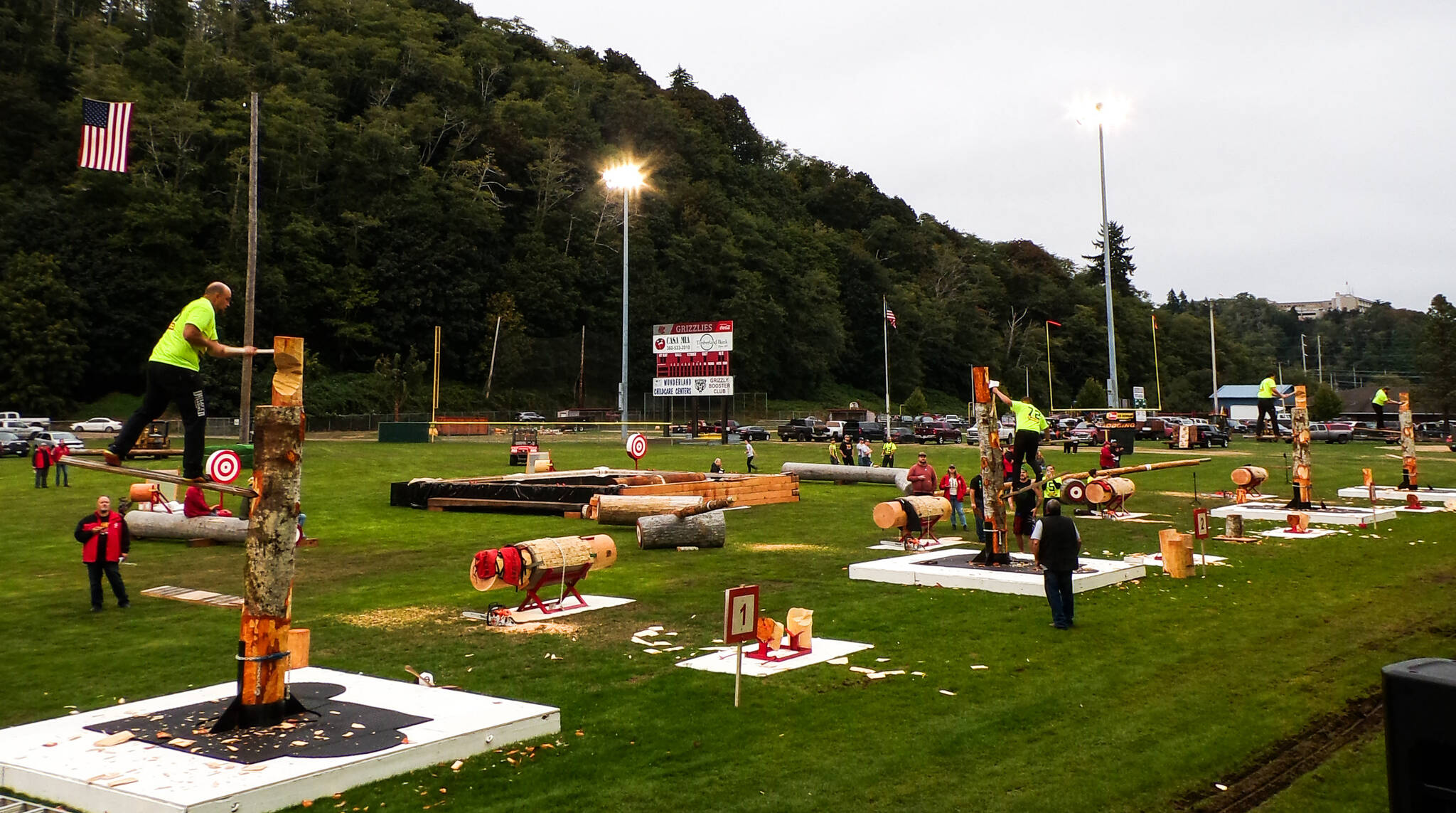 The 61st Annual Loggers’ Playday at the Olympic Stadium Saturday evening brought together contestants from near and far to compete through a vast variety of timber sports.