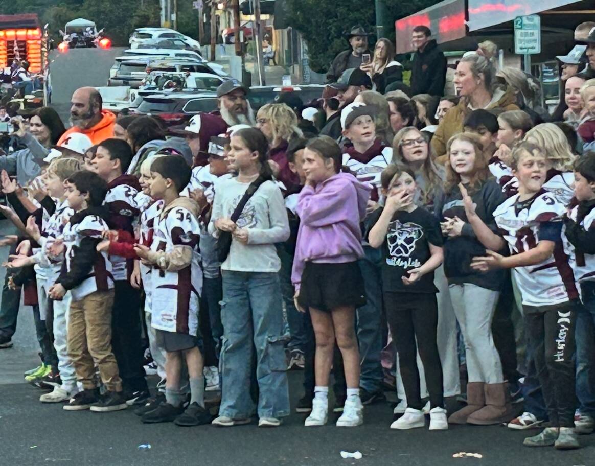 Montesano High School’s annual Homecoming Court rode through downtown Montesano on a fire engine leading the Homecoming Parade on Wednesday prior to the game. It is followed by floats or trailers with each class of the high school and the football team represented. The parade is a community unifier each year and brings out families, football fans and supportive local residents.