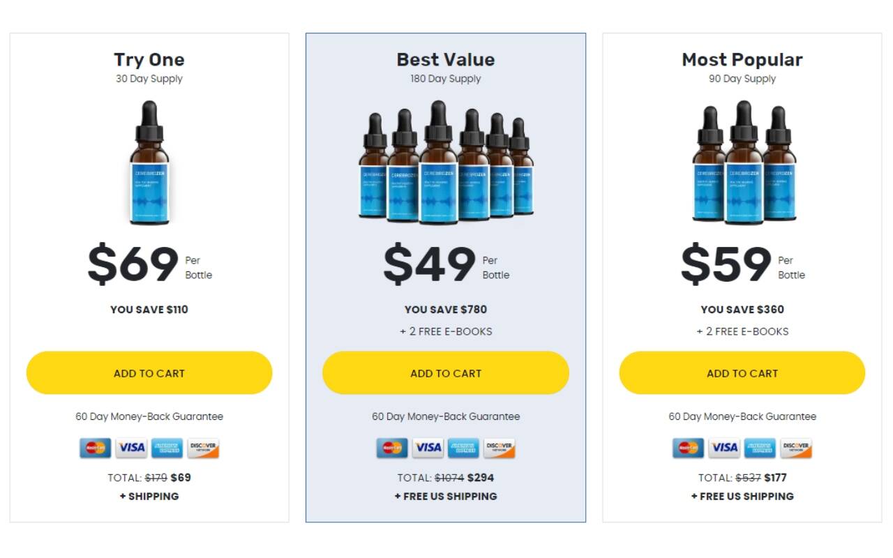 Experience the power of CEREBROZEN with our discounted packages designed to suit your needs and budget, ensuring satisfaction backed by our 60-day money-back guarantee. Order now to optimize your hearing support and energy levels!