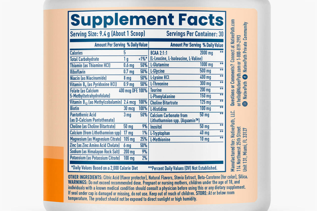 NativePath discloses all ingredients and dosages in the supplement upfront, making it easy to see exactly what’s inside each scoop.
