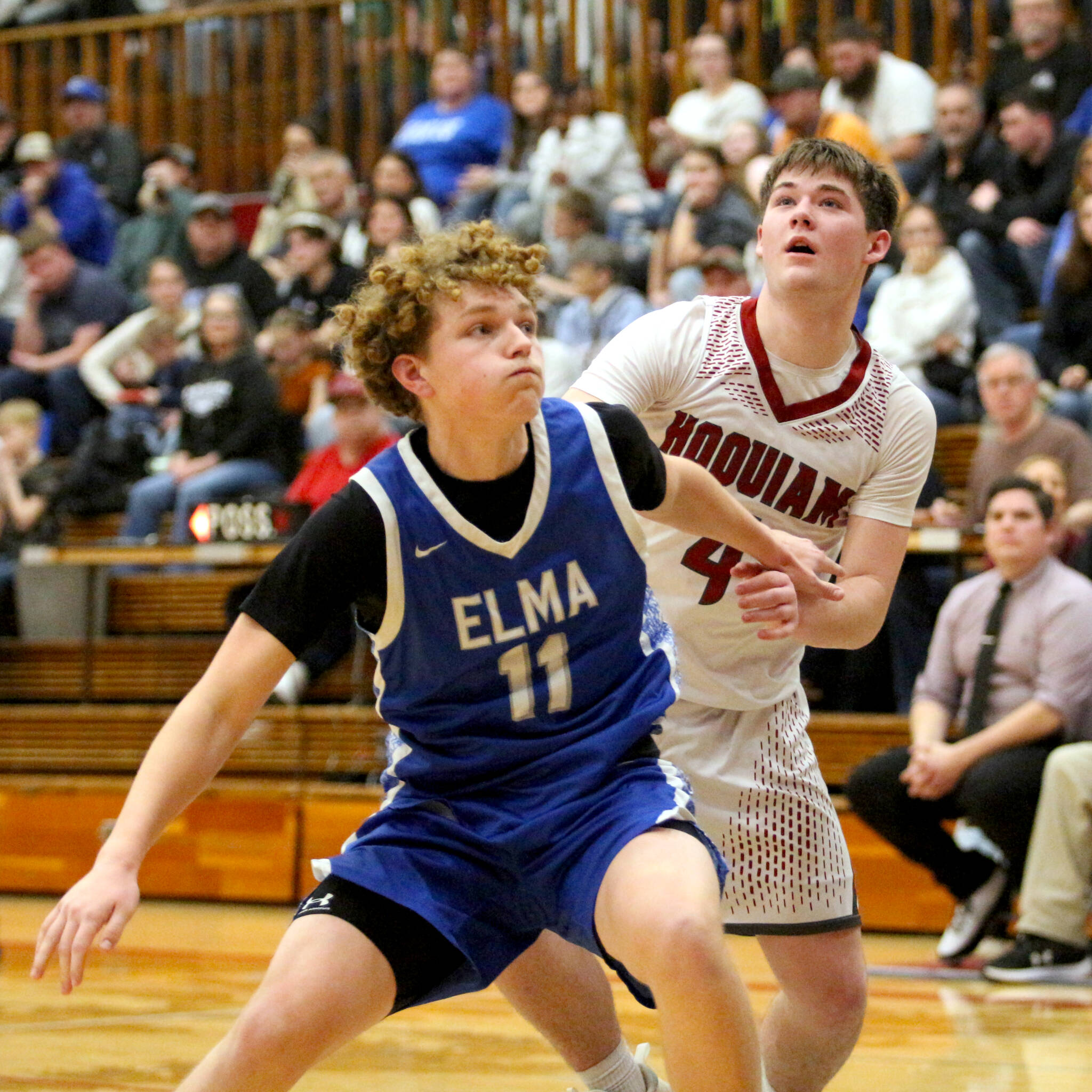Scoring: Elma – McGaffey 21, Webb 11, Yeager 10, Moreno 7, Muir 6, Moe 2, Myer 2. Hoquiam – Niemi 19, Bozich 13, McCoy 11, Maxfield 10, Abbott 7.