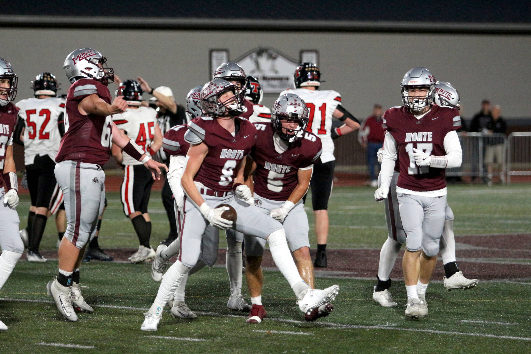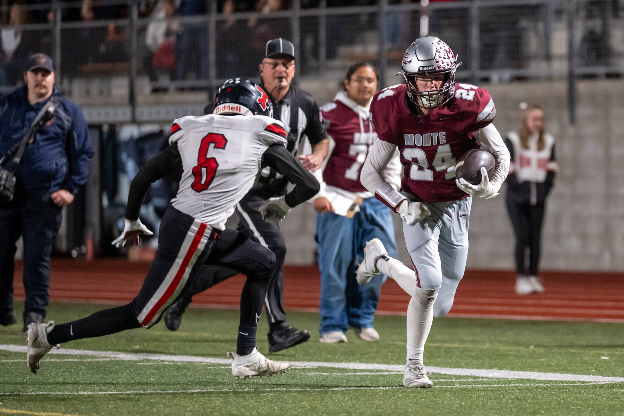 After Tenino was held to another three-and-out by the Bulldogs defense, Monte’s offense scored when Perry hit receiver Kole Kjesbu with a short pass in the flat. The senior raced 12 yards to the pylon for the touchdown that gave Monte a running clock the for the final 18 minutes of game time.