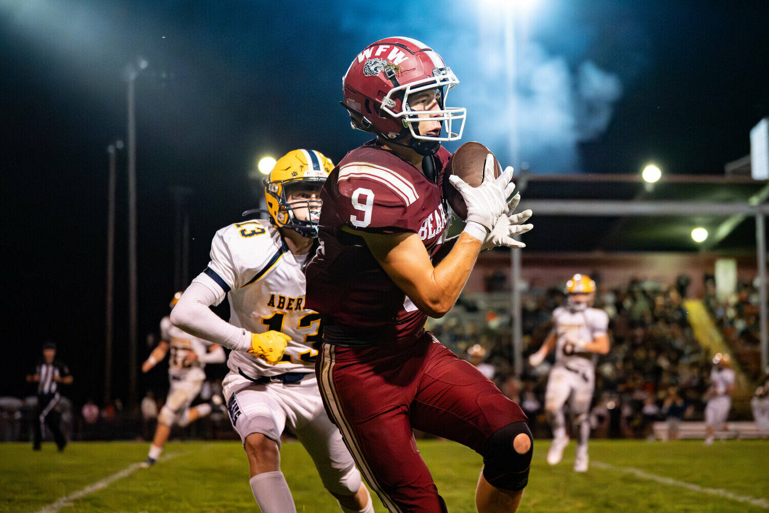 But the Bobcats defense faltered late in the second quarter as a 30-yard pass play had W.F. West inside the Aberdeen 20. The Bearcats then dug into their bag of tricks, scoring on a flea-flicker pass play from Hoffman to Holden Kunz to score with just two seconds left on the clock. A two-point conversion pass play was good to tie the game at 21-all at halftime.