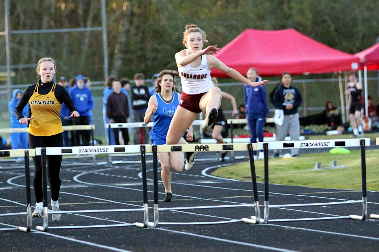 100 hurdles: 1, Sam Roundtree, Montesano, 17.72 PR. 2, Elka Cox, North Beach, 18.17. 3, Georgia Burkhart, Elma, 18.74 PR.
