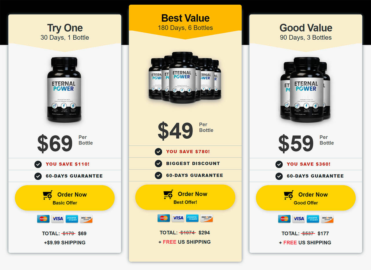 Eternal Power is available for purchase through its official website, providing a secure platform for customers to order the supplement. Buying directly from the website ensures that consumers receive genuine products and the best pricing options and promotions. It also allows users to access valuable information about the product, including ingredients, benefits and frequently asked questions.